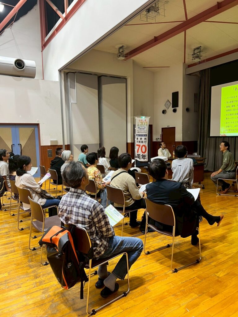 秦野市でセミナーを共催しました Posted on 2025年10月17日 | by master_TV | Leave a Comment on 秦野市でセミナーを共催しました 秦野市鶴巻公民館多目的ホールで秦野市制施行70周年記念事業の一環として「心と心の触れ合うコミュニティー創り」を趣旨にセミナーを共催、地域住民の皆さんから積極的な質疑応答をいただき充実した集まりとなりました。 心と心の触れ合うコミュニティー創り
